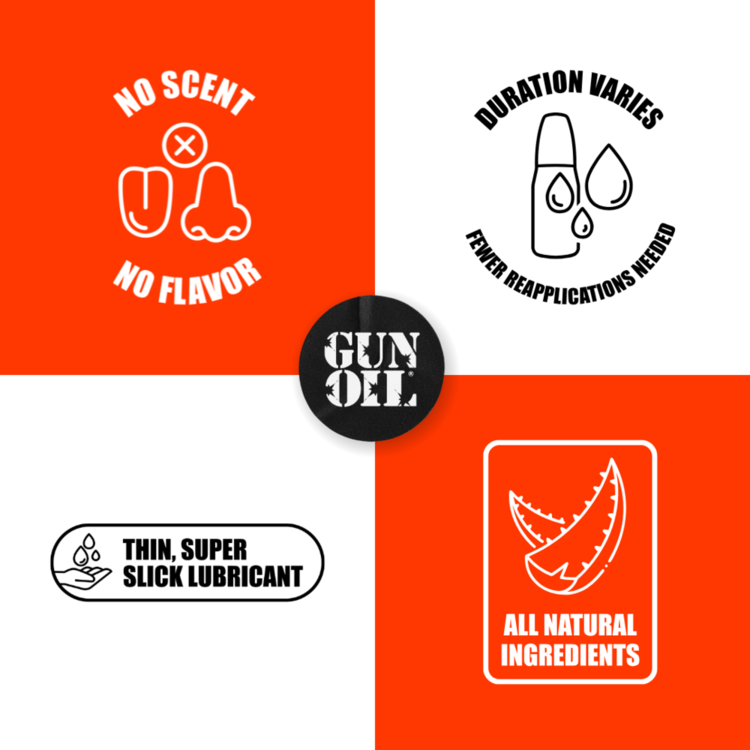 Gun Oil Silicone Based Lubricant is created from a proprietary, three-molecule silicone blend that is ultra-concentrated, incredibly slick, and water-resistant. Gun Oil won't break down or dry out. The added Vitamin E and Aloe Vera minimize friction and protect and restore tissues.