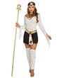 Let your inner monster out in this flirty tattered Egyptian mummy bodysuit featuring elongated, jagged edge sleeves and a snap crotch closure! This costume set also includes an Egyptian-style collar, matching leg warmers, and a rhinestone-embellished skirt with an Ankh symbol. (Headpiece and scepter not included.)