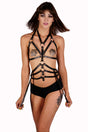 Strappy Leather Body Harness with Leg Straps - One Size Fits Most