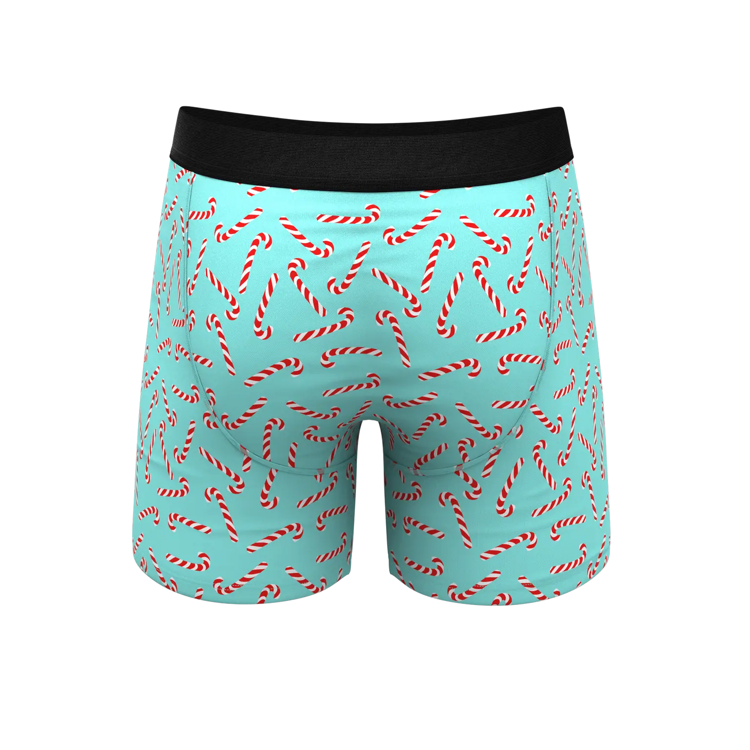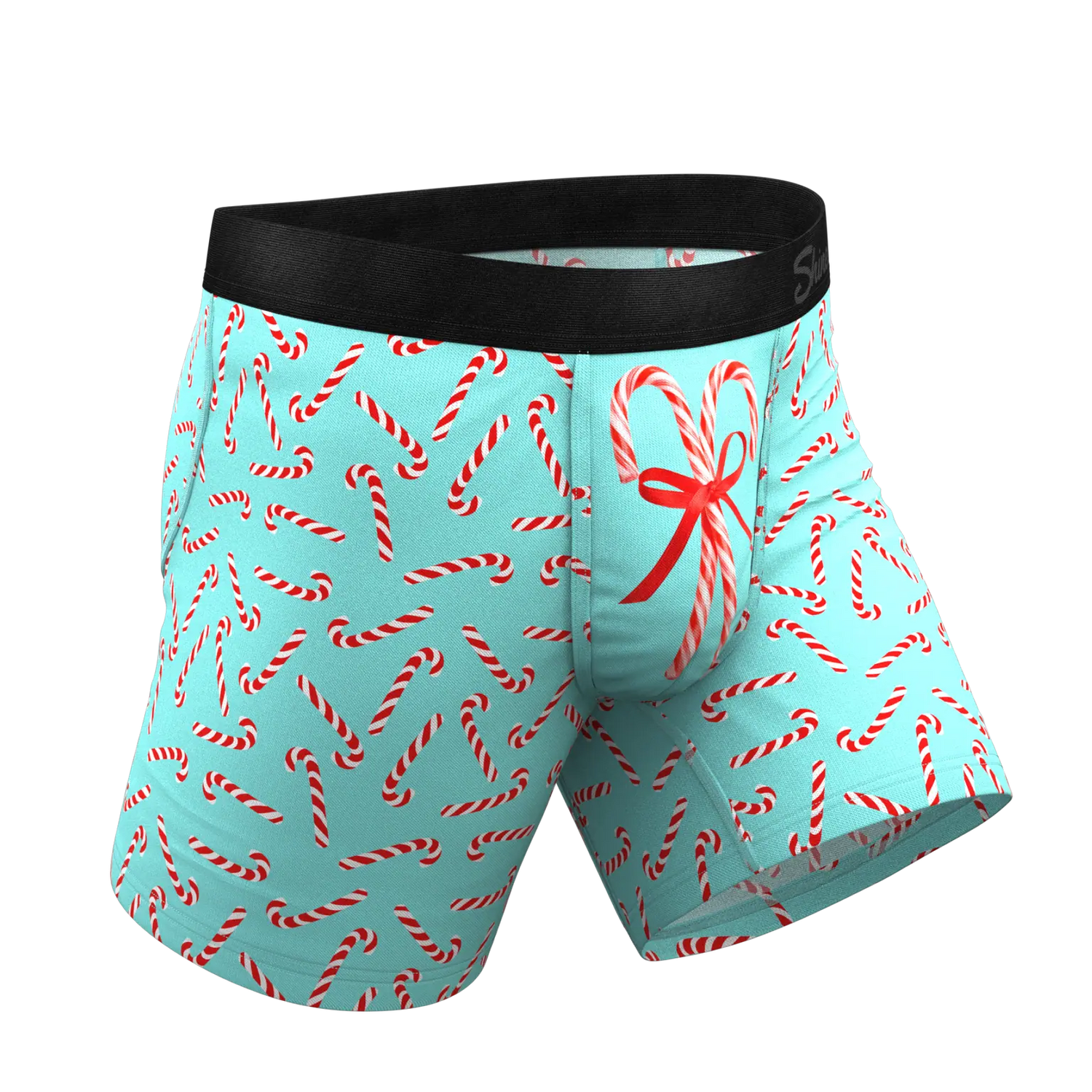 Is that a candy cane in your pocket or are you just excited to see me? Featuring a festive peppermint cane crotch design and printed fabric, these ultra soft boxer briefs are the perfect addition to any naughty holiday gift.