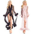 Bring on the babe vibes in this alluring long robe featuring a sheer mesh, a black marabou trim, long sleeves, satin front ties, and a sheer back. (Panty not included.)