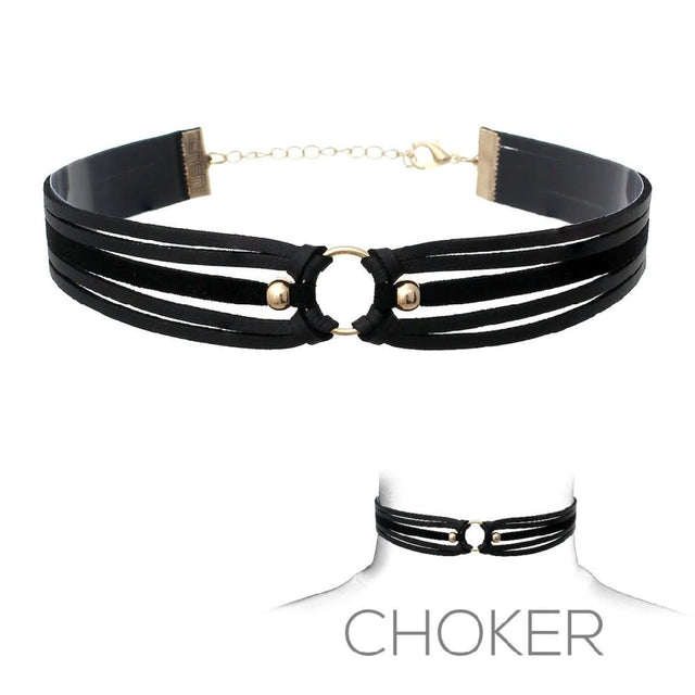 Comfortable suede and soft leather make the Suede and Leather Three Strap Choker a pleasure to wear, and its easy clasp gives a simple removal.